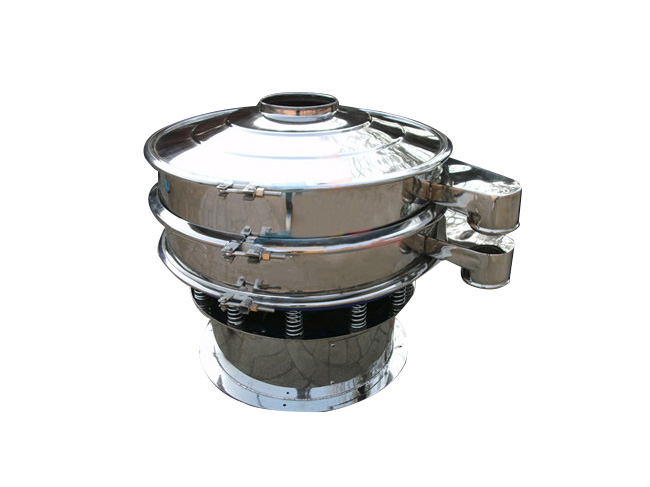 旋振篩(圓形振動篩)由立式振動電機作激振源,因為其上下端重錘安裝在發動軸兩側,使電機的旋轉運動轉變為垂直、水平、傾斜的三次元運動。  旋振篩產品特點:  設計精巧,耐用,適合任何粉類以及粘性液體的篩分。  操作簡單,換網方便,易于清洗。  篩網無阻塞,粉末無飛揚。  雜質以及粗料自動排出,并且可以與給料設備、輸送設備配套使用,處理量大,生產效率高。  尺寸小,節省空間,易于移動。  易于養護,可單層或多層使用。  篩網設計合理耐用,換網只需3-5分鐘。  篩網可達5層,篩分出6種不同顆粒大小的物料